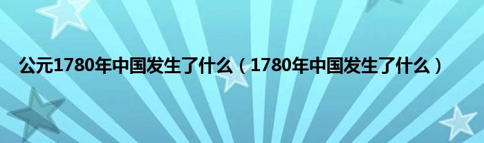 大家好,公元1780年中国发生了什么,1780年中国发生了什么很多人还不知道,现在让我们一起来看看吧!