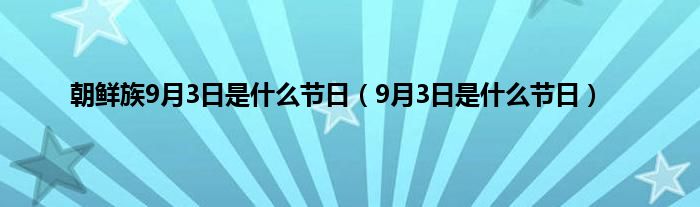 大家好,朝鲜族9月3日是什么节日,9月3日是什么节日很多人还不知道,现在让我们一起来看看吧!