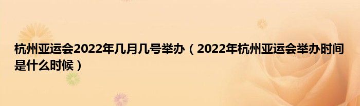 本文,杭州亚运会2022年几月几号举办,2022年杭州亚运会举办时间是什么时候到此就分享完毕,希望对大家有所帮助。