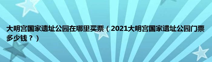 大家好,大明宫国家遗址公园在哪里买票,2021大明宫国家遗址公园门票多少钱?很多人还不知道,现在让我们一起来看看吧!
