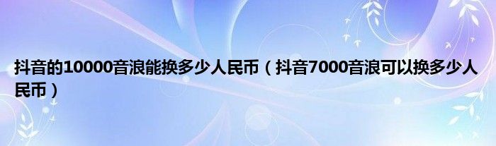 本文,抖音的10000音浪能换多少人民币,抖音7000音浪可以换多少人民币到此就分享完毕,希望对大家有所帮助。