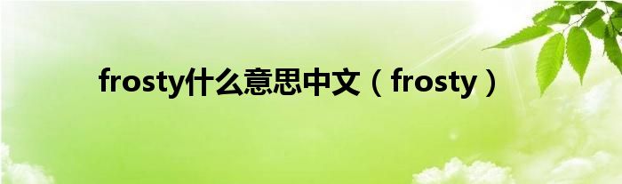 以上就是【frosty什么意思中文,frosty】相关内容。