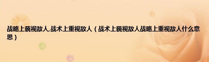 大家好,小问来为大家解答以上问题。战略上藐视敌人,战术上重视敌人,战术上藐视敌人战略上重视敌人什么意思这个很多人还不知道,现在让我们一起来看看吧!