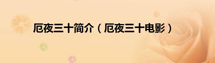 大家好,小问来为大家解答以上问题。厄夜三十简介,厄夜三十电影这个很多人还不知道,现在让我们一起来看看吧!