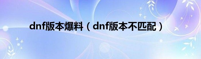 大家好,小问来为大家解答以上问题。dnf版本爆料,dnf版本不匹配这个很多人还不知道,现在让我们一起来看看吧!