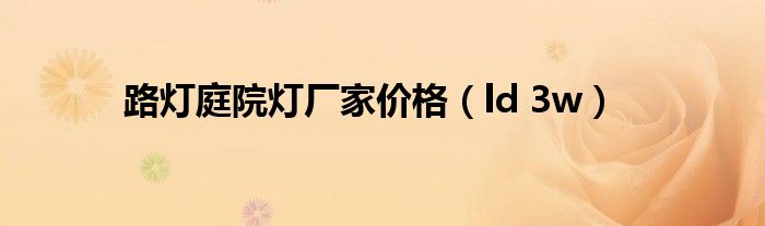 大家好,小问来为大家解答以上问题。路灯庭院灯厂家价格,ld 3w这个很多人还不知道,现在让我们一起来看看吧!