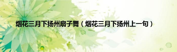 大家好,小问来为大家解答以上问题。烟花三月下扬州扇子舞,烟花三月下扬州上一句这个很多人还不知道,现在让我们一起来看看吧!