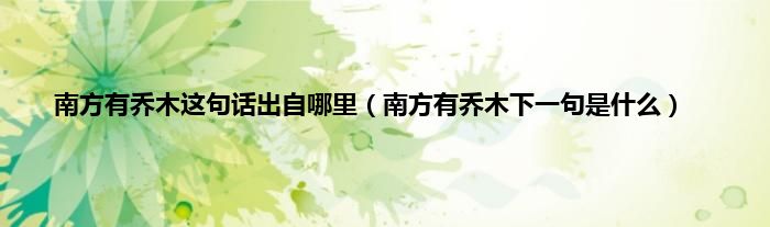 以上就是【南方有乔木这句话出自哪里,南方有乔木下一句是什么】相关内容。