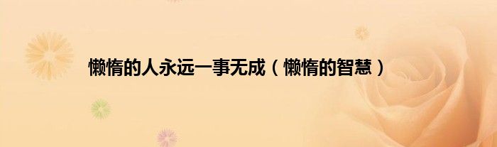 以上就是【懒惰的人永远一事无成,懒惰的智慧】相关内容。