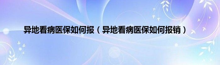 以上就是【异地看病医保如何报,异地看病医保如何报销】相关内容。