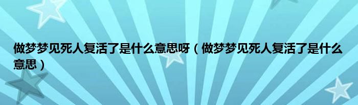 大家好,综合小编来为大家讲解下。做梦梦见死人复活了是什么意思呀,做梦梦见死人复活了是什么意思这个很多人还不知道,现在让我们一起来看看吧!
