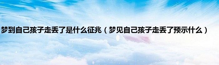 本文梦到自己孩子走丢了是什么征兆,梦见自己孩子走丢了预示什么到此分享完毕,希望对大家有所帮助。