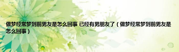 大家好,综合小编来为大家讲解下。做梦经常梦到前男友是怎么回事 已经有男朋友了,做梦经常梦到前男友是怎么回事这个很多人还不知道,现在让我们一起来看看吧!
