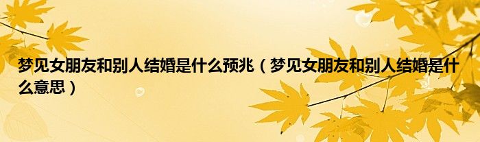 一、梦见女朋友和别人结婚的梦境解析: 梦见女朋友和别人结婚,预示着近期你的工作运势尚可,而且可能会对前景有不切实际的想法,并因此抑制不住地振奋,虽然冲动,但是事事抢先也能争到不少好机会。