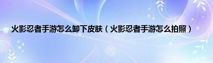 本文,火影忍者手游怎么卸下皮肤,火影忍者手游怎么拍照到此就分享完毕,希望对大家有所帮助。