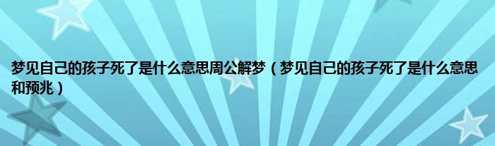 本文梦见自己的孩子死了是什么意思周公解梦,梦见自己的孩子死了是什么意思和预兆到此分享完毕,希望对大家有所帮助。