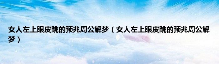 大家好,综合小编来为大家讲解下。女人左上眼皮跳的预兆周公解梦,女人左上眼皮跳的预兆周公解梦这个很多人还不知道,现在让我们一起来看看吧!