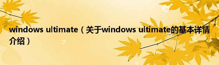 本文关于windows ultimate的基本详情介绍就讲解完毕,希望对大家有所帮助。