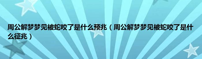 大家好,综合小编来为大家讲解下。周公解梦梦见被蛇咬了是什么预兆,周公解梦梦见被蛇咬了是什么征兆这个很多人还不知道,现在让我们一起来看看吧!