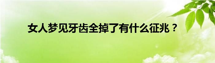 一、 女人梦见牙齿全掉了的梦境解析: 女人梦见牙齿全掉了,预示着梦者在事业中会碰到良人,别人对你的帮助很关键,而你在事业中的坚持,也能为你事业上长久的发展有好消息。