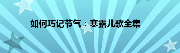 本文如何巧记节气:寒露儿歌全集到此分享完毕,希望对大家有所帮助。