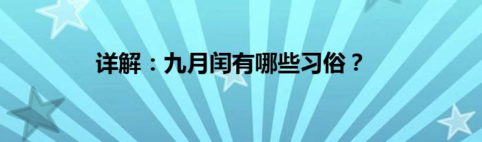 本文详解:九月闰有哪些习俗?到此分享完毕,希望对大家有所帮助。