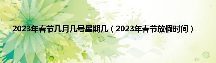 大家好,综合小编来为大家讲解下。2023年春节几月几号星期几,2023年春节放假时间这个很多人还不知道,现在让我们一起来看看吧!