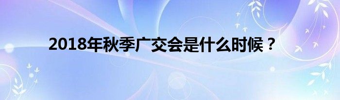 一、问:2018年秋季广交会时间是时候?: 答:2018年10月15日-2018年11月4日。