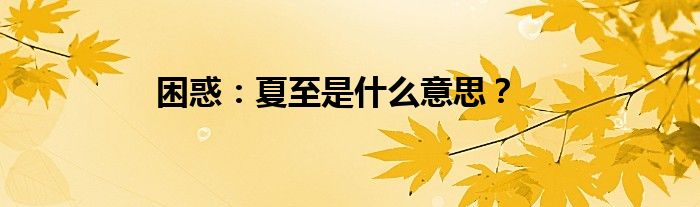 大家好,综合小编来为大家讲解下。困惑:夏至是什么意思?这个很多人还不知道,现在让我们一起来看看吧!