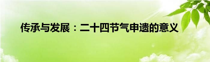 大家好,综合小编来为大家讲解下。传承与发展:二十四节气申遗的意义这个很多人还不知道,现在让我们一起来看看吧!