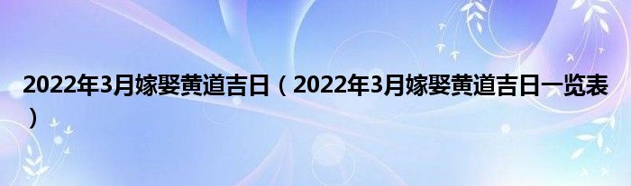 大家好,综合小编来为大家讲解下。2022年3月嫁娶黄道吉日,2022年3月嫁娶黄道吉日一览表这个很多人还不知道,现在让我们一起来看看吧!