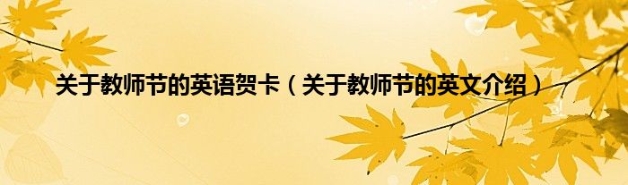 大家好,综合小编来为大家讲解下。关于教师节的英语贺卡,关于教师节的英文介绍这个很多人还不知道,现在让我们一起来看看吧!