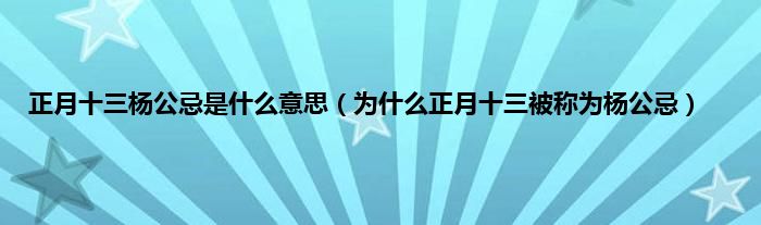 大家好,综合小编来为大家讲解下。正月十三杨公忌是什么意思,为什么正月十三被称为杨公忌这个很多人还不知道,现在让我们一起来看看吧!