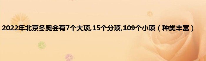 大家好,综合小编来为大家讲解下。2022年北京冬奥会有7个大项,15个分项,109个小项,种类丰富这个很多人还不知道,现在让我们一起来看看吧!