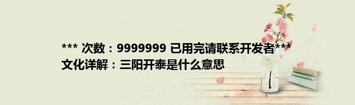 大家好,综合小编来为大家讲解下。*** 次数:9999999 已用完请联系开发者*** 文化详解:三阳开泰是什么意思这个很多人还不知道,现在让我们一起来看看吧!