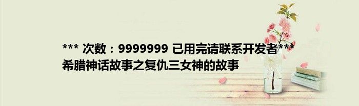 大家好,综合小编来为大家讲解下。*** 次数:9999999 已用完请联系开发者*** 希腊神话故事之复仇三女神的故事这个很多人还不知道,现在让我们一起来看看吧!