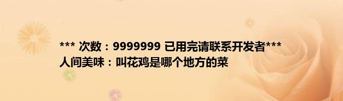 本文*** 次数:9999999 已用完请联系开发者*** 人间美味:叫花鸡是哪个地方的菜到此分享完毕,希望对大家有所帮助。
