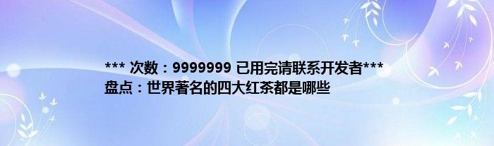 大家好,综合小编来为大家讲解下。*** 次数:9999999 已用完请联系开发者*** 盘点:世界著名的四大红茶都是哪些这个很多人还不知道,现在让我们一起来看看吧!