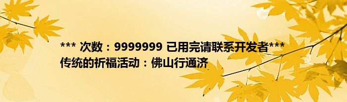 本文*** 次数:9999999 已用完请联系开发者*** 传统的祈福活动:佛山行通济到此分享完毕,希望对大家有所帮助。