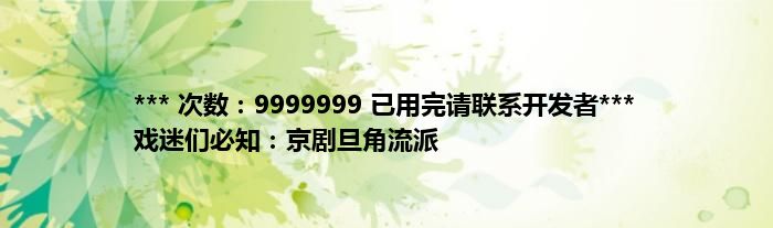 本文*** 次数:9999999 已用完请联系开发者*** 戏迷们必知:京剧旦角流派到此分享完毕,希望对大家有所帮助。