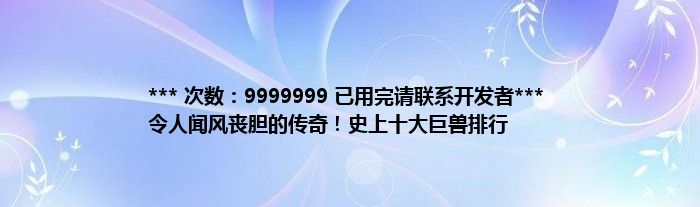 大家好,综合小编来为大家讲解下。*** 次数:9999999 已用完请联系开发者*** 令人闻风丧胆的传奇!史上十大巨兽排行这个很多人还不知道,现在让我们一起来看看吧!