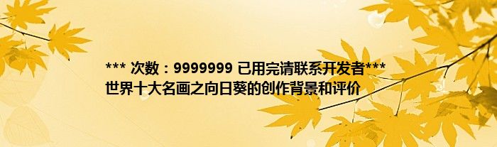 本文*** 次数:9999999 已用完请联系开发者*** 世界十大名画之向日葵的创作背景和评价到此分享完毕,希望对大家有所帮助。