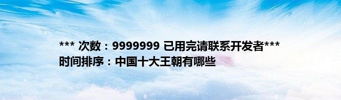 本文*** 次数:9999999 已用完请联系开发者*** 时间排序:中国十大王朝有哪些到此分享完毕,希望对大家有所帮助。