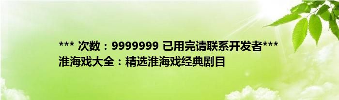 大家好,综合小编来为大家讲解下。*** 次数:9999999 已用完请联系开发者*** 淮海戏大全:精选淮海戏经典剧目这个很多人还不知道,现在让我们一起来看看吧!
