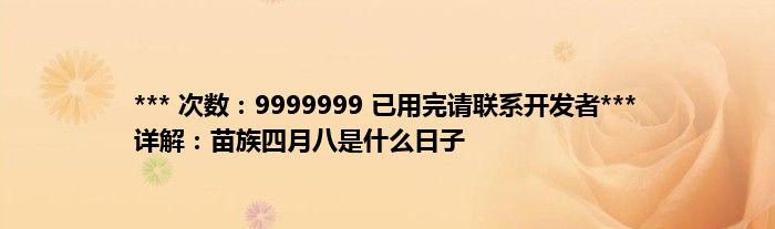 本文*** 次数:9999999 已用完请联系开发者*** 详解:苗族四月八是什么日子到此分享完毕,希望对大家有所帮助。