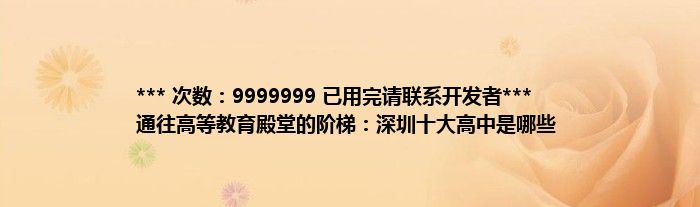 本文*** 次数:9999999 已用完请联系开发者*** 通往高等教育殿堂的阶梯:深圳十大高中是哪些到此分享完毕,希望对大家有所帮助。