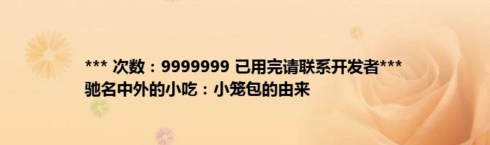 本文*** 次数:9999999 已用完请联系开发者*** 驰名中外的小吃:小笼包的由来到此分享完毕,希望对大家有所帮助。