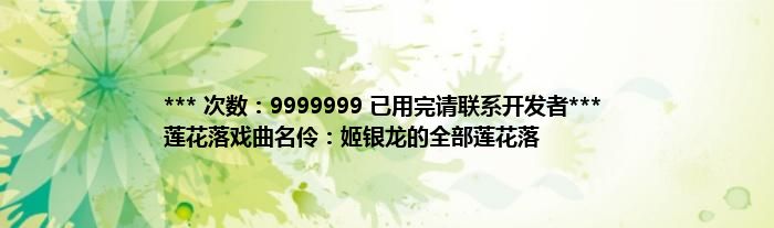 本文*** 次数:9999999 已用完请联系开发者*** 莲花落戏曲名伶:姬银龙的全部莲花落到此分享完毕,希望对大家有所帮助。