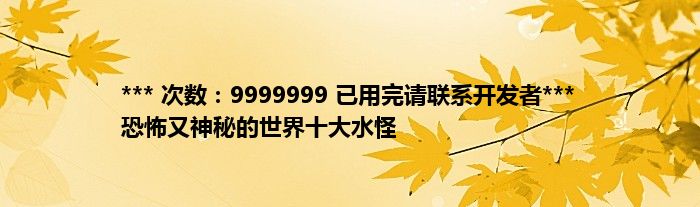 本文*** 次数:9999999 已用完请联系开发者*** 恐怖又神秘的世界十大水怪到此分享完毕,希望对大家有所帮助。
