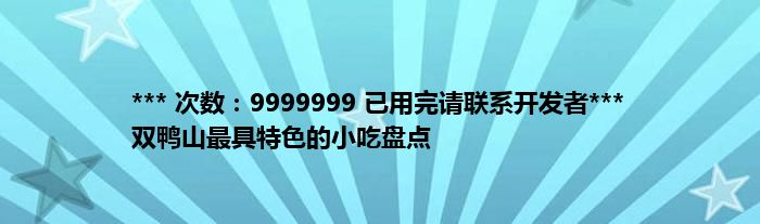 本文*** 次数:9999999 已用完请联系开发者*** 双鸭山最具特色的小吃盘点到此分享完毕,希望对大家有所帮助。